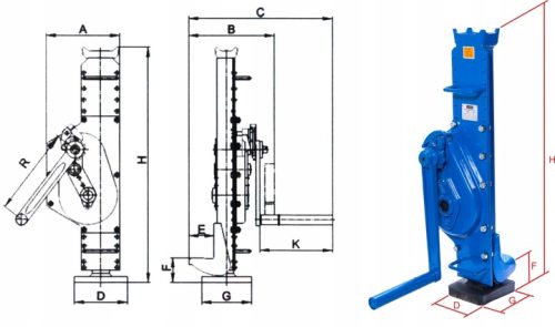 Profesjonalny, korbowy podnośnik z zapadką MAGNUM. Przystosowany do podnoszenia ciężarów o masie nie przekraczającej 10 ton. Bardzo solidne wykonanie, konstrukcja wykonana z grubej blachy; duża, masywna stopa. Korba składana, samohamowna.