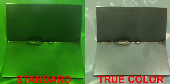 Zastosowanie nowoczesnej technologii TRUE COLOR daje pełniejsze odwzorowanie kolorów oraz wyraźniejszy obraz miejsca spawu i jego otoczenia.