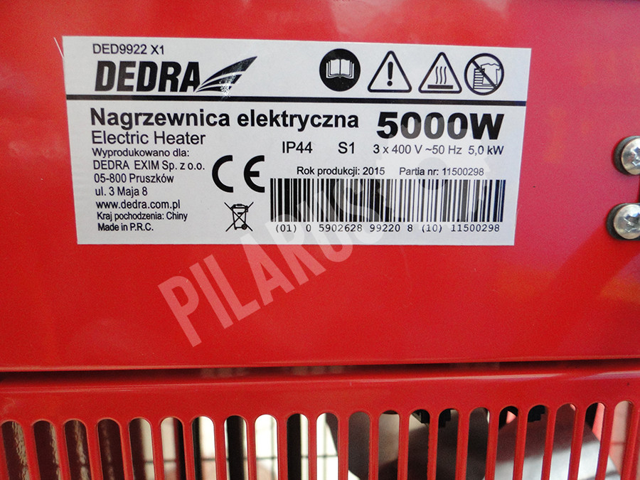 NAGRZEWNICA ELEKTRYCZNA DEDRA 5KW GRZEJNIK 400V
