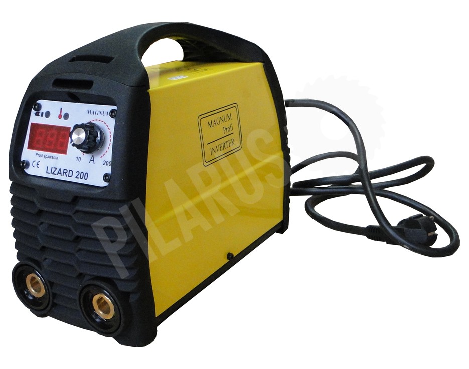 Urządzenie inwerterowe LIZARD 200 II jest lekkim, przenośnym, źródłem energii. Służy do spawania elektrodami otulonymi różnych gatunków stali w tym zwykłych, nierdzewnych oraz metali kolorowych. Przeznaczone jest do pracy w warunkach terenowych i wykonywania wszelkiego rodzaju prac naprawczych. Urządzenie charakteryzuje się dużą sprawnością 200A / 60%. Posiada znakomitą charakterystykę łuku dla elektrod rutylowych i zasadowych.